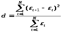 представляет собой «отношение фон Неймана», применённое к остаткам оценки. Этот критерий имеет эффективность аналогичную таковой для критерия r>1>, первого коэффициента автокорреляции остатков. Из предыдущей главы известно, что этот критерий будет особенно мощным, если ошибки следуют авторегрессинному процессу первого порядка. Таким образом, он, по-видимому, хорошо приспособлен для экономических моделей.