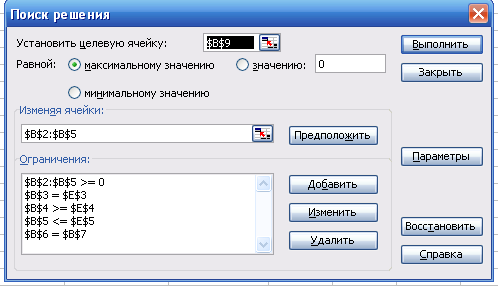 Рис. 3.3. Диалоговое окно надстройки Поиск решения