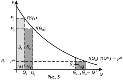 У результаті одержимо, що ціна n-й партії товару Pn = f(Qn) = f(Q*) = P*, а витрати споживачів на покупку цієї останньої партії товару складуть PnQ, або площа прямокутника Sn.