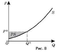 Графічно він може бути представлений площею фігури, обмеженої кривої пропозиції, віссю цін і прямій, паралельній осі абсцис, що проходить через крапку ринкової рівноваги (малюнок 8).