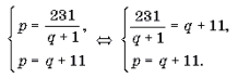 Одержимо q*=10. Отже, p* = 10 + 11 = 21.