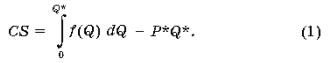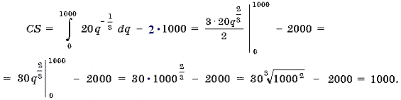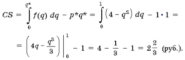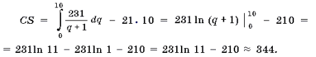 Таким чином, споживчий надлишок можна порахувати по наступній формулі