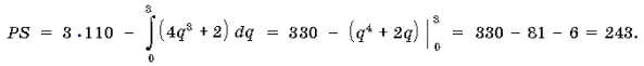 Завдання 4. Відомо, що крива пропозиції деякого товару має вигляд p = 4q3 + 2, а рівновага на ринку даного товару досягається при обсязі продажів Q* = 3. Визначите додаткову вигоду виробника при продажі такої кількості продукції.