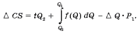 У загальному ж випадку результат зміни споживчого надлишку внаслідок збільшення ціни на товар може бути записаний, наприклад, у наступному виді
