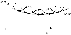 2. Кривая LATC является огибающей минимальных краткосрочных средних затрат фирмы на единицу продукции (рис. 2).