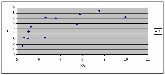 Відповідно до обчислених коефіцієнтів кореляції, показник Y має тісніший зв’язок із змінною Х>3> порівняно із змінною Х>2>. Тому відкинемо фактор Х>2>. Будемо розглядати модель Y=Y(X>1>, X>3>).