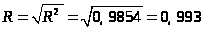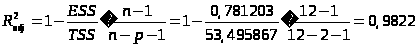 Оскільки отримані значення є близькими до одиниці, то можна зробити висновок про тісний зв’язок між річним товарообігом і незалежними змінними. При цьому понад 98% варіації річного товарообігу пояснюється варіацією торгівельної площі та середньоденного доходу.