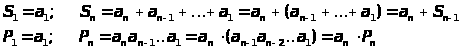 Сумму и произведение элементов прогрессии можно также вычислить по рекуррентной формуле: