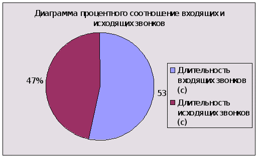 Построить круговую диаграмму, отражающую процентное соотношение входящих и исходящих звонков.