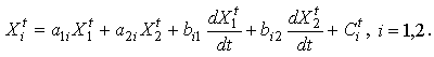 Пусть экономика представлена двумя отраслями народного хозяйства, каждая из которых выпускает свою продукцию и затрачивает на воспроизводство труд, средства труда и предметы труда. Валовый продукт каждой отрасли за год распределяется соответственно на конечный продукт и производственное потребление, причем в процессе производства данной отрасли может применяться продукция обеих отраслей. Известно, что потребление одной отраслью продукции другой пропорционально объему валового выпуска первой из них. Конечный продукт обеих отраслей делится на валовые капитальные вложения и непроизводственное потребление. Без учета амортизационных отчислений, можно считать, что валовые капитальные вложения из одной отрасли в другую каждый год пропорциональны приросту валовой продукции второй отрасли.
