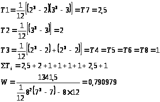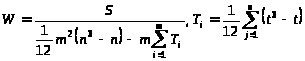 Где t - число связанных рангов в каждом отдельно взятом столбце матрицы рангов,