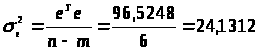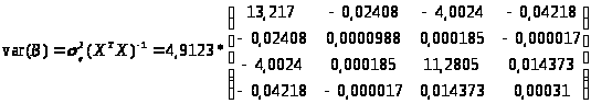 На діагоналі коваріаційної матриці отримуємо дисперсії коефіцієнтів регресії b>j>: