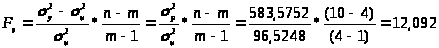 Табличне значення для (m-1), (n-m) F-критерію (0,95) = 4,76. Оскільки F>p>>F>табл >, модель можна вважати статистично значимою. (нульова гіпотеза відхиляється).