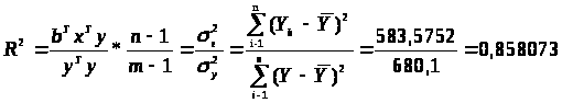 Його значення показує, що на 85,8073% варіацію змінної Y можна пояснити варіацією пояснювальних змінних Х.