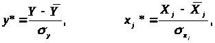Зв’язок між оцінками параметрів моделі на основі нормалізованих і ненормалізованих змінних запишеться таким чином: