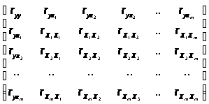 б) парні коефіцієнти кореляції між окремими X>k> і X>j>> > r>XkXj>> > > >(їх для моделі існує m*m);