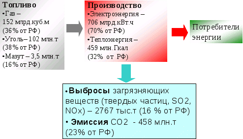 Наличие высокого уровня валовых выбросов вредных веществ в атмосферу (около 16% от общего выбросов стационарными источниками РФ) , сброса загрязненных сточных вод (более 3%), накопление в золоотвалах более 1,0 млрд.т ЗШО.