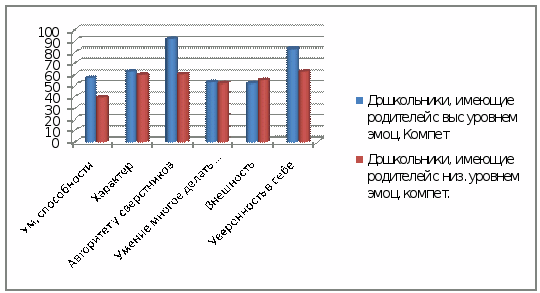 Эмоциональная компетентность родителей взаимосвязана с более адекватной самооценкой и уровнем притязания их детей.