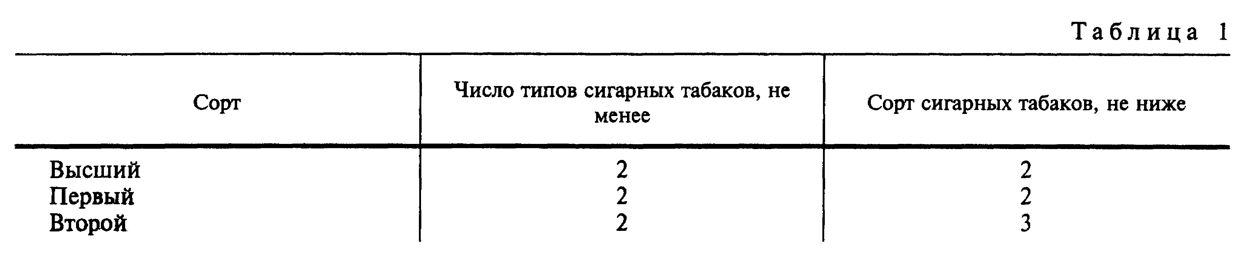 1. В зависимости от применяемого сырья и физико-технологических показателей сигары делятся на сорта: