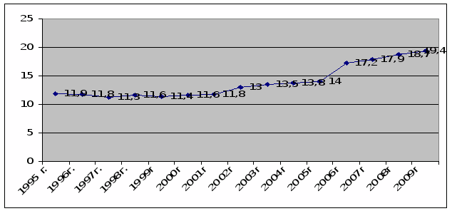 Таким образом, смертность населения республики в период 1990-2006 гг. напрямую зависела от социально-экономических потрясений и явилась наиболее негативным последствием экономического кризиса 90-х годов.