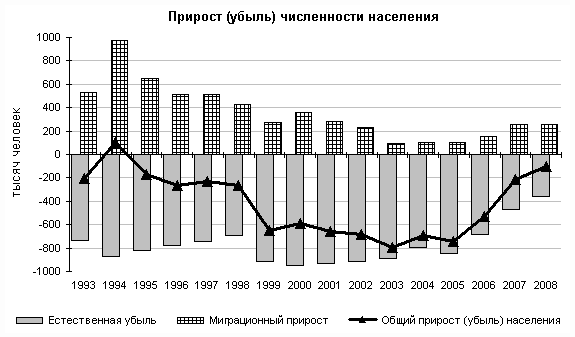 За период, прошедший после переписи населения 2002 года (2003–2008 годы), естественная убыль российского населения составила 4,0 млн. человек. Однако, если в 2003 году число умерших превысило число родившихся в 1,6 раза, то в 2008 году – в 1,2 раза. Это привело к сокращению естественной убыли российского населения в 2008 году до 362 тыс. человек. Это наименьший показатель за последние 15 лет.