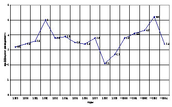 Разводимость росла до 1992г. В 1993г. произошло снижение разводимости, и такая тенденция наблюдалась до 2001г., а затем произошел рост. 4