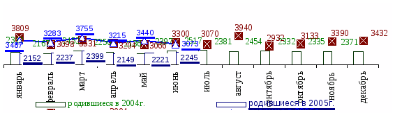 Данные, характеризующие воспроизводство населения в крае в январе-июне 2005г. и 2004г., приведены в таблице: