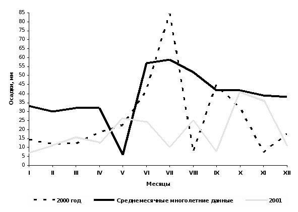 Около трети поверхности суши испытывает дефицит влаги (годовое количество осадков 250—500 мм), а половина этой площади крайне засушлива (годовые осадки ниже 250 мм и испаряемость более 1000 мм). Для развития растений существенно, чтобы осадки относительно равномерно распределялись во время периодов активного роста. Однако в районах неустойчивого увлажнения часто бывают засушливые периоды именно в летние месяцы.