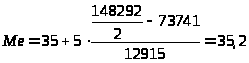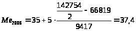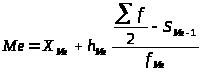 Медиана рассчитывается по формуле: