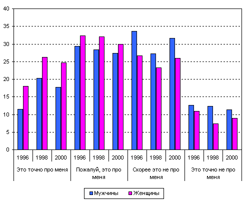 «Мне кажется, что у меня мало таких качеств, которые ценятся в сегодняшней экономической ситуации» в 1996–2000 годах, %