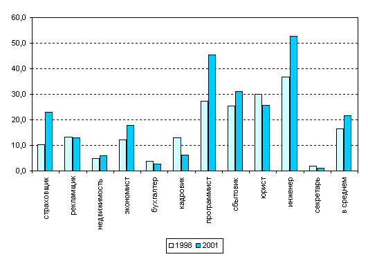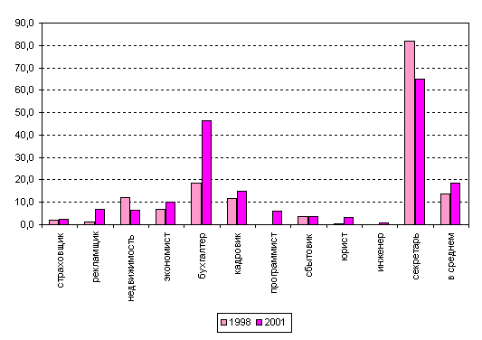 Исследование, проведенное в 1998–2001 годах показало [16], что значительная часть объявлений о вакансиях гендерно не нейтральны. Причем это относилось к профессиям, в которых не требуются профессиональные навыки, связанные с биологическими различиями качества рабочей силы мужчин и женщин. За четыре года доля таких объявлений о вакансиях выросла от 30% до 40%, несмотря на то, что в российском трудовом законодательстве существует запрет на дискриминацию при найме по гендерному признаку. Распределение гендерных предпочтений по профессиональным группам показывает, что у работодателей существуют устойчивые стереотипы о профессиональной предпочтительности мужчин и женщин. Говоря о дискриминации на рынке труда, можно выделить два типа стереотипов, которые поддерживают гендерное неравенство: стереотипы положения и стереотипы поведения.