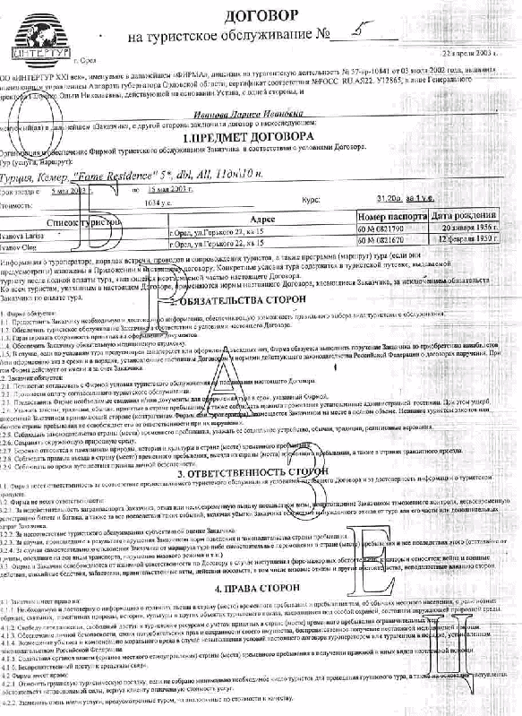 Деятельность турфирмы ООО "Интертур XXI век" в качестве турагента