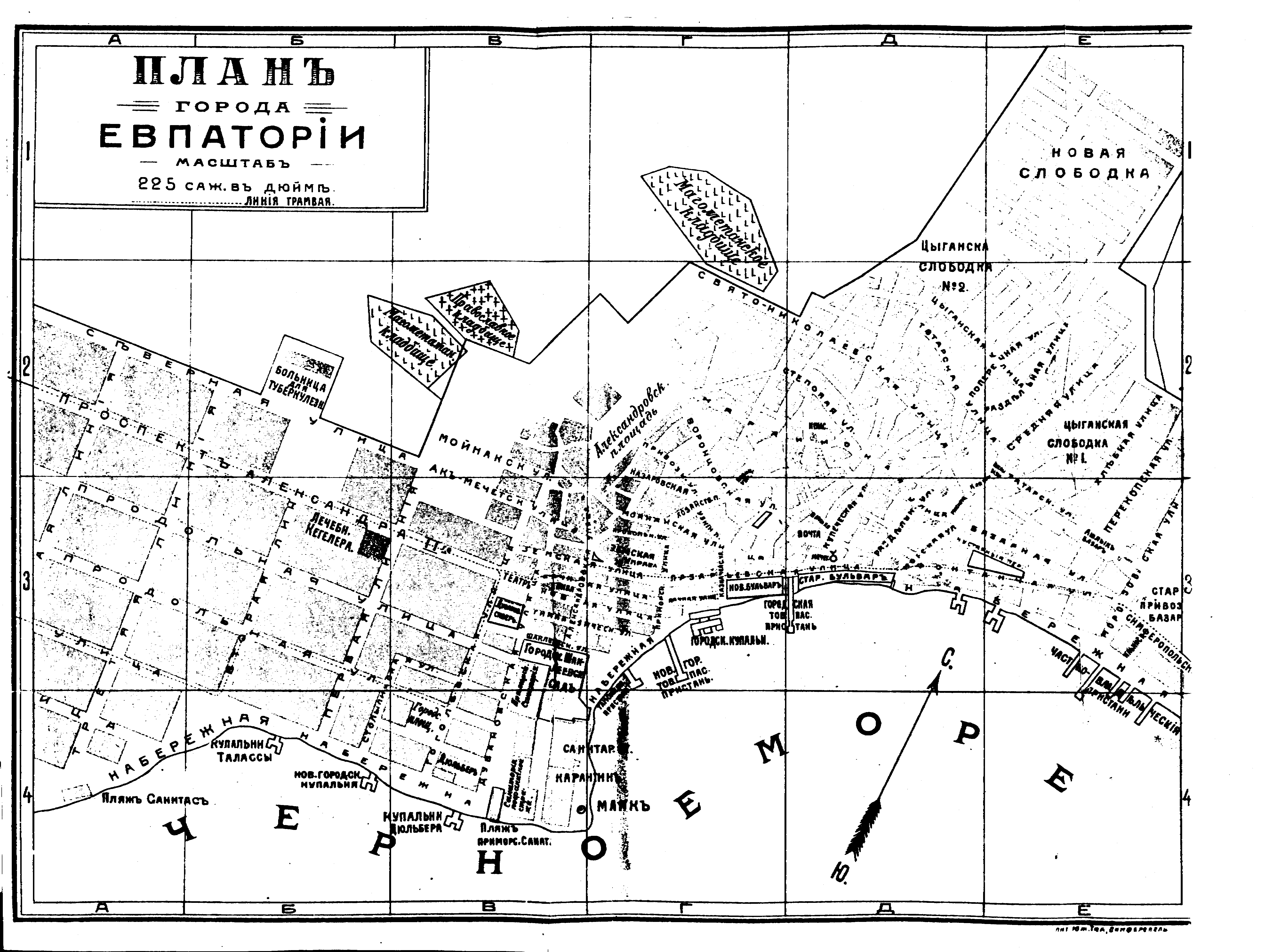 Евпатория, уездный город Таврической губернии, находится на берегу моря (45 (12 (с. ш. и 51 (3 (в. д. ).