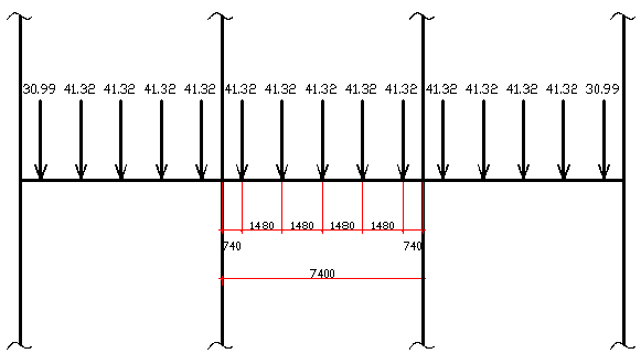 Статический расчёт ригеля на вертикальную нагрузку производится в составе поперечной рамы так как сосредоточенных нагрузок по пять в каждом пролёте то заменяем их эквивалентной равномернораспределённой нагрузкой.
