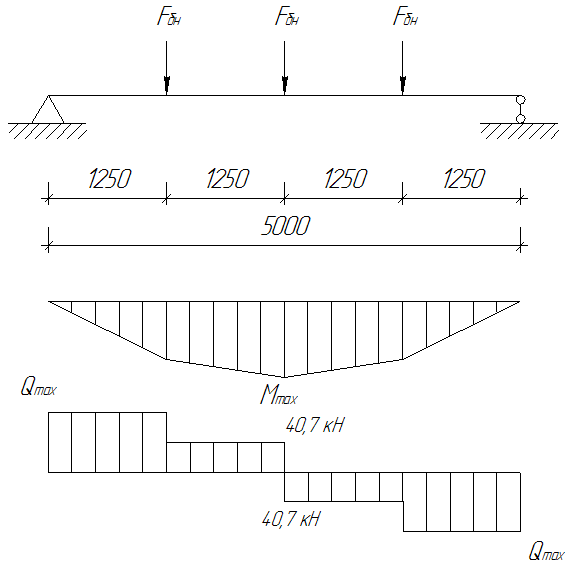 Изгибающие моменты для участков с опиранием на четыре канта определяем по формуле