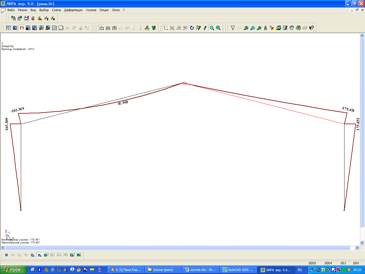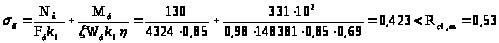 гдеN – усилие в стойке рамы, N = 130 кН;