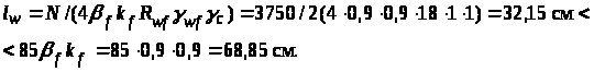 Принимаем катет шва kf = 11 мм, проверяем lw = 79 < 850,91,1 = 84,15 см, что удовлетворяет условию.