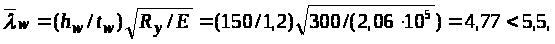 b = H – 2tf = 49,2 – 21,2=46,8 см; а = bb/2 – tw/2 = 20/2 – 0,88/2 = 9,56 см; b/а = 46,8/9,56 = 4,895.
