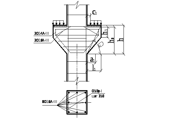 Кроме того, рабочая высота фундамента h>0> из условия продавливания по поверхности пирамиды (грани которой наклонены на 450 к горизонту) должна быть не менее: