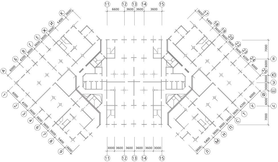 Среди стеновых систем следует выделить схемы с перекрестными стенами и коробчатые (оболочковые). Смешанные системы сочетают в себе отдельные признаки двух других систем, к ним относят каркасноствольные и коробчатоствольные.