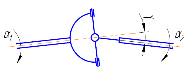 Зависимость между углами поворота ведущего и ведомого валов имеет следующий вид: