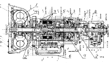 Анализ конструкций позволил выделить характерные узлы, входящие в АКПП все или частично, по одному или несколько. В АКПП как объекты испытаний и доводки можно рассматривать (рис. 1) следующие узлы: гидротрансформатор I, насосы питания 2, фрикционные узлы 3, муфты свободного хода 4, механические (зубчатые) передачи 5, панели управления 6, центробежный регулятор 7, механизм блокировки выходного вала 8.