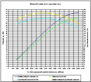 - построение графиков зависимости крутящего момента на ведущих колесах (или тяговое усилие) и мощности на ведущих колесах (колесной мощности) от оборотов двигателя;