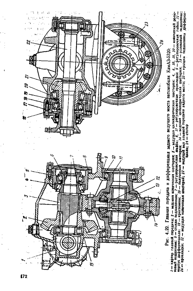 Камаз – 740 автомобильдерінде екі тісті пар, спираль тісті екі конустық шестерня және екі қисық тісті цилиндрлі шестернясы бар екі еселенген басты беріліс қолданылады. бұндай схема басты беріліс картерінің үстінде үлкен беріліс санын алуға мүмкіндік береді.