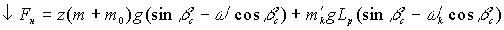 Еквівалентне зусилля Fе, Н, розраховують за допомогою формули (25). Так, при відкатці вантажу по уклону одним кінцевим канатом, коли
