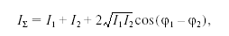 де φ - різниця фаз інтерферуючих променів, І>1> і І>2> - їх інтенсивності, g - ступінь когерентності.