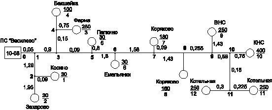 Рассмотрим линию 10кВ отходящую от трансформаторной подстанции Василево 110/35/10кВ фидера 10 - 08 (Рисунок 1).