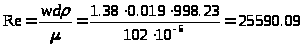 d – диаметр трубопровода, 0,019 м.
