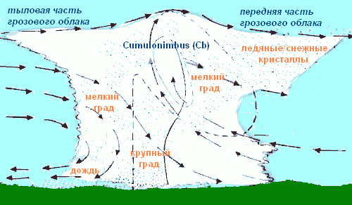 Рисунок 4. Схема многоячейковой грозовой структуры