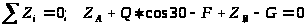 3) ∑F>KZ>=Z>A>+Z>B>+R>C>·sin30°-G-Q·cos45°=0;